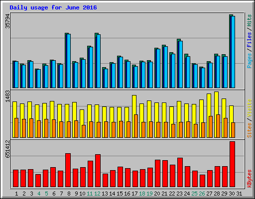 | Day | Hits | Files | Pages | Visits | Sites | KBytes | ||||||